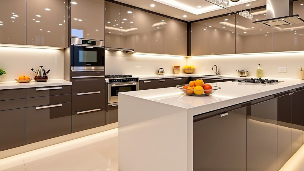 A basic modular kitchen can be affordable, while premium kitchens with acrylic or PU finishes cost more. Planning early helps control expenses.